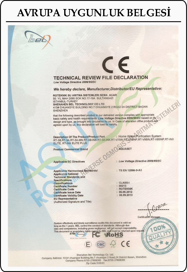 Roteknik Su Arıtma Sistemleri 2011 yılında başlattığı Ar-Ge çalışmaları kapsamında su arıtma cihazlarına odaklanmıştır. Daha kaliteli, daha ergonomik, daha sağlıklı ve ulaşılabilir ekonomik düzeyde Türkiye’de üretilmesini hedeflemiştir. Sonrasında çalışmalarına hız vererek markalaşma hedefi doğrultusunda sürdürülebilir gelişim, üretim ve pazarlama çalışmalarına tüm hızıyla devam etmektedir. 2004 yılında Çevre Yönetim Sistemi, 2012’de CE, TS EN ISO-9001, 2008’de Kalite Yönetim Sistem Belgesi ve TS EN ISO-14001 Belgelerini almaya hak kazanmıştır. Böylece gerek ürün kalitesi, servis sonrası hizmet ve gerekse çevreye verdiği önemi belgelendirmiştir.